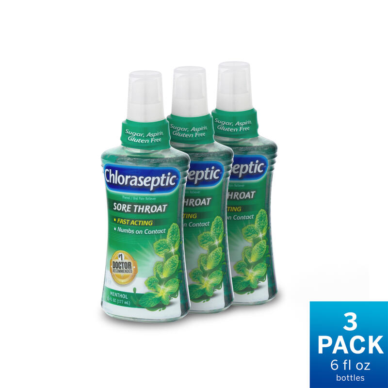 - Includes 3 bottles of Menthol Sore Throat Spray, each containing 6 fl oz