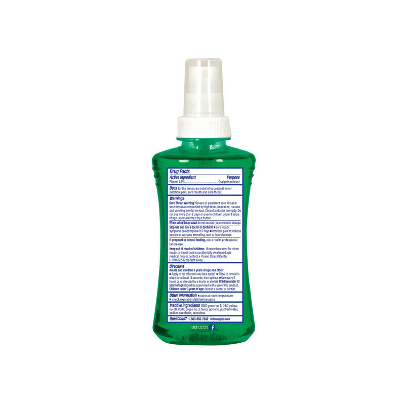 Chloraseptic stands as the top choice recommended by doctors for sore throat relief (1). With a history of over 55 years in alleviating sore throats, Chloraseptic offers fast-acting relief in various flavors through its Sore Throat Lozenges and Sprays. The Chloraseptic Sore Throat Sprays deliver rapid and targeted relief by numbing on contact. Available in flavors like Cherry, Warming Honey Lemon, Wild Berries, and Menthol, these sprays are convenient with an easy-to-control sprayer, making them a valuable addition to your home's medicine cabinet whenever a sore throat strikes. This product is aspirin-free and sugar-free, suitable for adults and children aged 3 years and above. For relief on-the-go, consider trying Chloraseptic Sore Throat Lozenges! (1) Based on the IQVIA ProVoice Survey from June 1, 2018, to May 31, 2019.