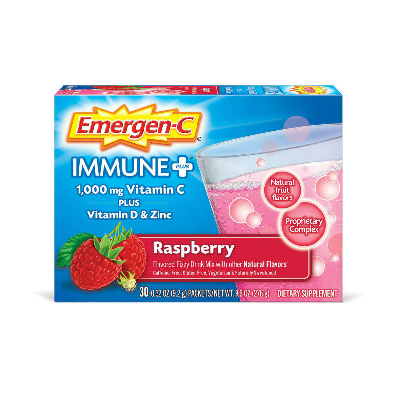 Emergen-C Immune+ is designed with an enhanced immune support formula to strengthen your body's natural defenses*. Each serving delivers 1,000 IU (25 mg) of Vitamin D and 1,000 mg of Vitamin C – that's more than 10 oranges*(1). This formula also includes a proprietary complex with beta-glucans and arabinogalactans, along with B Vitamins and electrolytes. The powder drink mix is caffeine-free and made with real fruit flavors and no artificial sweeteners.