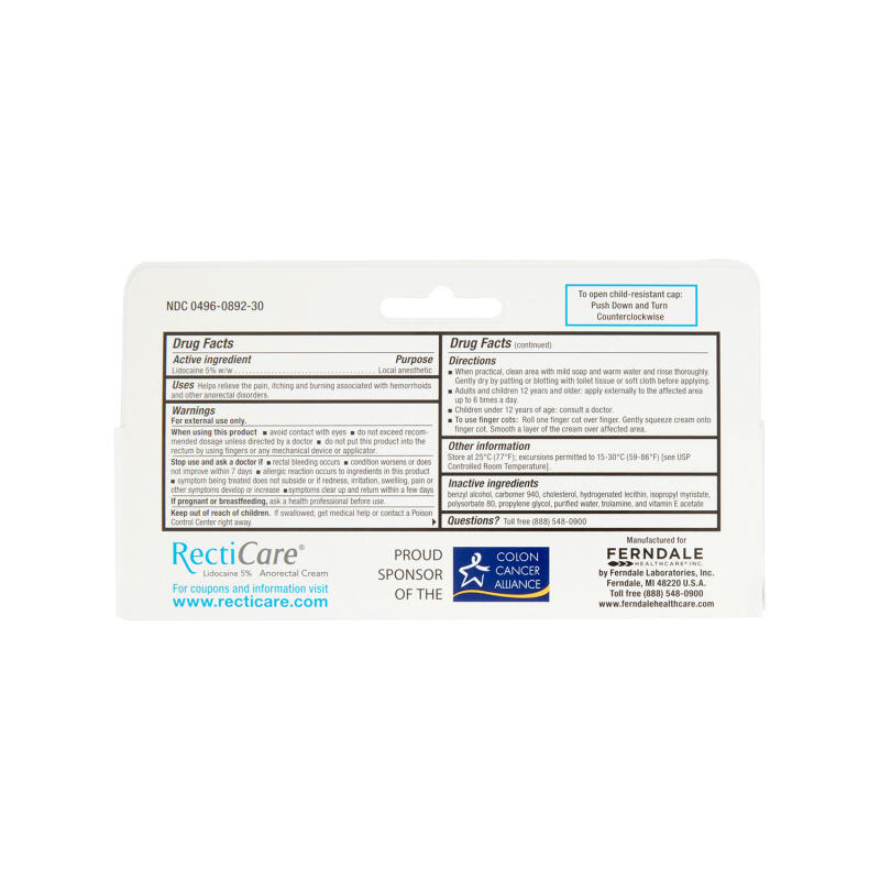 RectiCare Anorectal Cream provides quick relief from burning, itching, and pain associated with hemorrhoids and other anorectal disorders. It includes 10 finger cots for hygienic application and is recommended by colon and rectal surgeons for its rapid pain relief. This cream boasts the highest strength of lidocaine available without a prescription, ensuring effective and safe use. RectiCare is also a proud sponsor of the Colon Cancer Alliance.